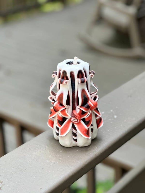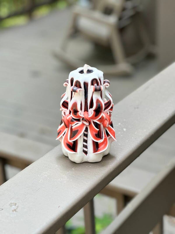 Show off your Bulldog pride with this striking UGA-inspired hand-carved candle! Designed in the iconic red, black, and white color scheme, this elegant piece is a must-have for any University of Georgia fan. Standing 6 inches tall and 4 inches wide, it’s a bold yet refined statement for your home, tailgate setup, or office.