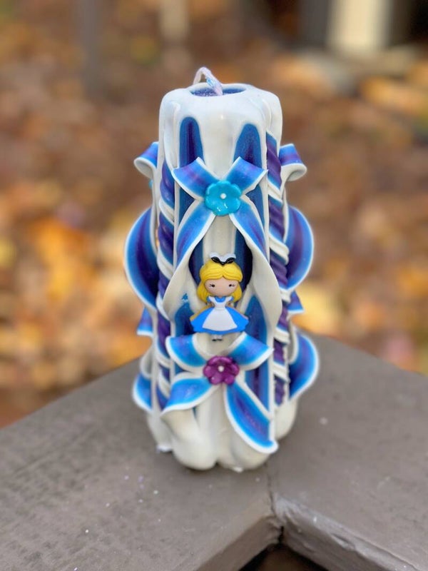 Alice in Wonderland Hand-Carved Candle – 6” x 4” Paraffin Wax